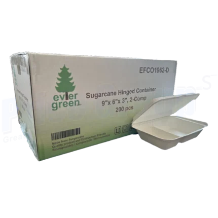 Sugarcane Take-Out Container | 9″ * 6″ * 3″ / 200 Ct / Case